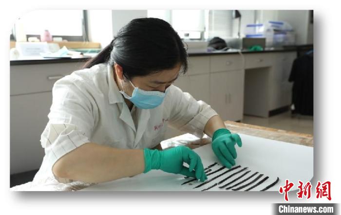荊州文物保護中心工作人員對竹簡排序。(湖北省文旅廳供圖)