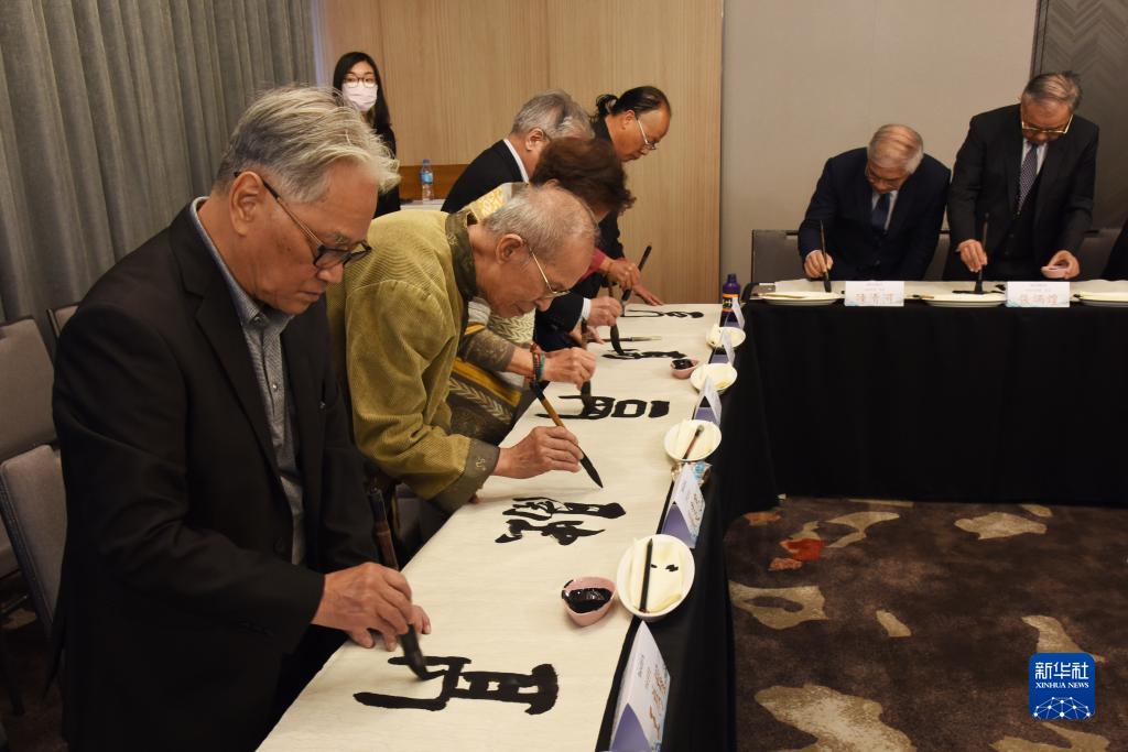 12月8日,由兩岸有關(guān)機構(gòu)共同主辦的2023海峽兩岸年度漢字評選結(jié)果在臺北揭曉,“融”字以最高票當(dāng)選。這是臺灣中華書學(xué)會的多名書法家和參會嘉賓寫下不同字體的“融”字。新華社記者 劉斐 攝