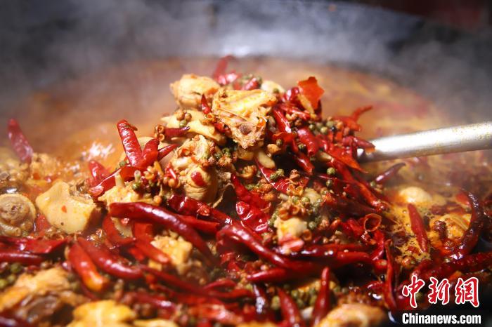 “我們的紅綠花椒都是從四川空運過來的,只辣椒就配比了七八種?!痹诔交疱侂u總店,飯點兒不到,大廳就坐滿了人。14年前,從父親手里接過火鍋雞店的黃超,一邊在熱氣騰騰的灶臺邊熟練地上下翻炒雞肉,一邊告訴中新社記者,火鍋雞的選材非常重要,任何一顆小小的配料都關(guān)乎火鍋雞的成敗。