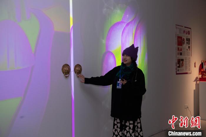 輕輕叩響鑲嵌于墻上的輔首銜環(huán),一幅幅AI影像便出現(xiàn)在墻面,觀眾猶如打開一扇通往未來之門,充滿無限想象。這是四川美術(shù)學(xué)院實(shí)驗(yàn)藝術(shù)學(xué)院研二學(xué)生徐晗、李芮佳帶來的作品。她們介紹,因2024年是中國農(nóng)歷的龍年,兩人便以“龍”為靈感展開創(chuàng)作。她們將中國神話傳說中“椒圖”的鋪首紋飾與傳統(tǒng)門扣作為交互,引領(lǐng)觀眾透過科技的“外衣”看到傳統(tǒng)文化的創(chuàng)新表達(dá)。