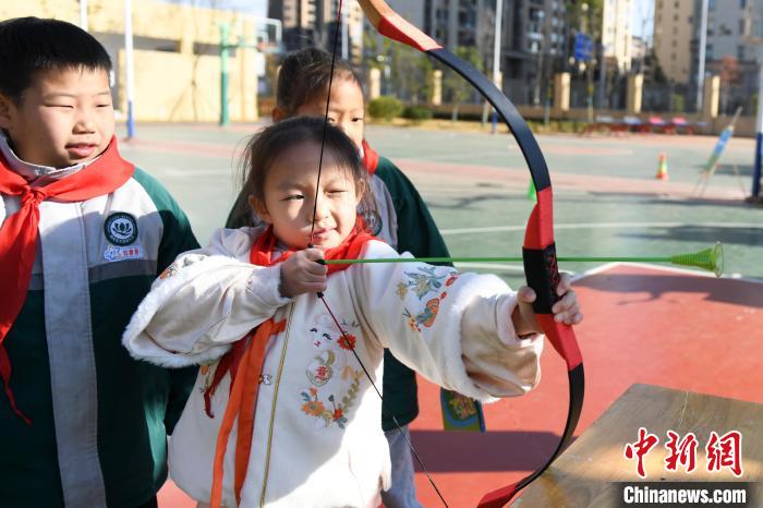 小學(xué)生體驗(yàn)射箭。中新網(wǎng)記者楊華峰攝