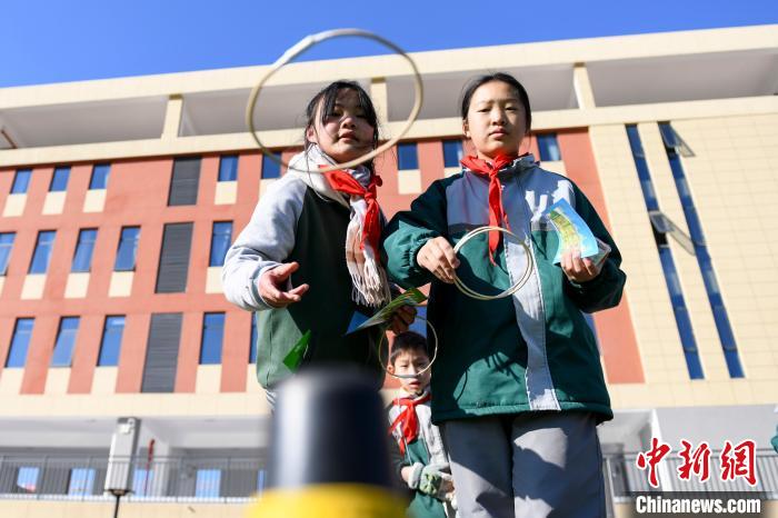 小學(xué)生體驗(yàn)套圈。中新網(wǎng)記者楊華峰攝