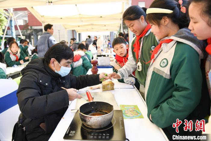 小學(xué)生圍觀糖畫制作。中新網(wǎng)記者 楊華峰 攝