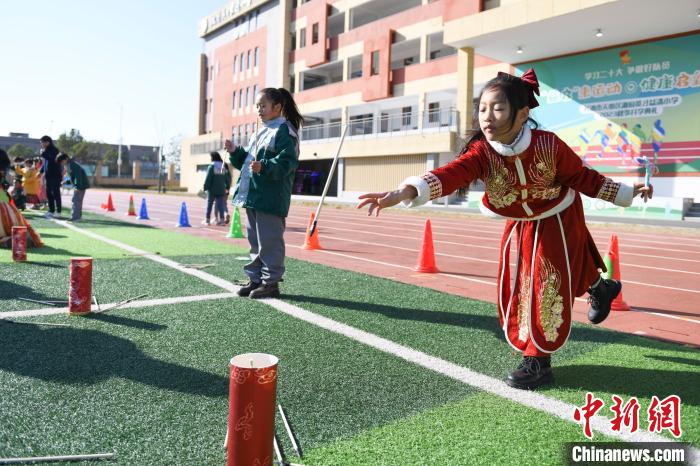 小學(xué)生體驗(yàn)投壺。中新網(wǎng)記者 楊華峰 攝