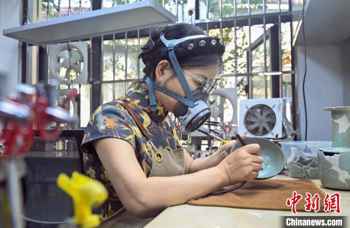 杭州市文物考古研究所所長胡利紅修復(fù)瓷器。杭州市文物考古研究所 供圖