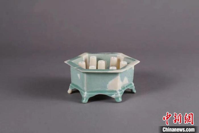 修復(fù)好的南宋龍泉窯粉青釉六方七管占景盆。杭州市文物考古研究所 供圖