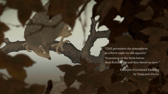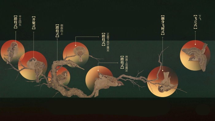 《千年調(diào)·宋代山水花鳥》數(shù)字特展網(wǎng)站6大主題垂類包括山水篇的“境、幻、趣”,以及花鳥篇的“芳、羽、靈”。每個垂類均采用不同的敘事和獨特的設(shè)計,比如,“境”講述了何以觀山水到何以畫山水,深入剖析《溪山行旅圖》與《早春圖》的寫實技法、精神內(nèi)涵和人文價值;從仙山幻景到文人的精神家園,從“幻”看宋人構(gòu)建多彩神秘,引人入勝的山水世界,代表作有《煙江疊嶂圖》《瀟湘臥游圖》等;“趣”圍繞《四景山水圖》《踏歌圖》等點景人物巨作,全方位展示宋人融入山水園林之間的生活情趣,情景交融,如身臨其境。花鳥篇的“芳”表達宋人愛花,全株式如《草蟲花碟圖》、折枝式如《紅白芙蓉圖》、插花如《花籃圖》……無論花卉以何種姿態(tài)躍然紙上,無不寄托著宋人崇尚自然的生活態(tài)度與恬淡雅致的審美趣味;刻畫入微,畫以傳神,宋代畫師格物窮理,對禽鳥精雕細琢的描繪在“羽”垂類中體現(xiàn)得淋漓盡致,比如劍拔弩張的《楓鷹雉雞圖》和集科學與美學于一體的《寒雀圖》;在萬物有“靈”這個垂類中,透過畫家對筆下瑞獸奇珍的描摹,體會執(zhí)筆者美好的愿景和真摯的情感,以及宋人閑處觀物、細推物理而得其樂的情趣。