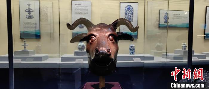 23日上午,《盛世回歸——圓明園國寶獸首暨清宮珍寶展》在鄂爾多斯市博物院開展。該展展品為清代圓明園海晏堂外的十二生肖獸首中的牛首、虎首、猴首、豬首4件銅獸首原件,以及鼠首(復(fù)制品)、兔首(復(fù)制品)、馬首(仿制品)。