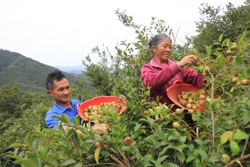 村民正在采收油茶。(天峨縣委宣傳部供圖)