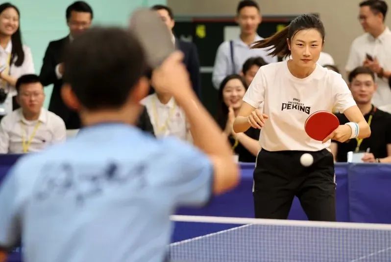 丁寧與臺(tái)灣政治大學(xué)師生進(jìn)行乒乓球交流。圖片來源:臺(tái)灣”中時(shí)新聞網(wǎng)” 胡經(jīng)周 攝