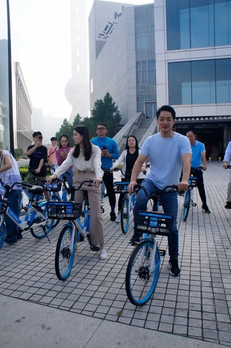 臺(tái)北市長蔣萬安在上海騎共享單車。圖片來源:臺(tái)灣“中時(shí)新聞網(wǎng)” 林麗玉 攝