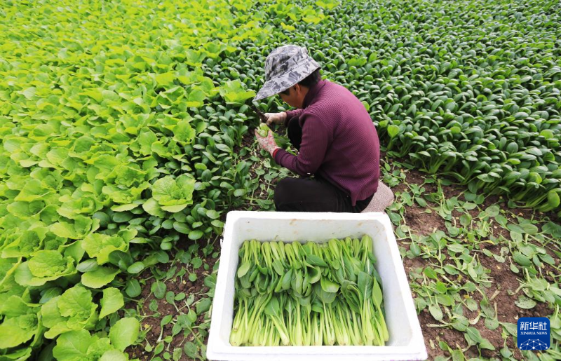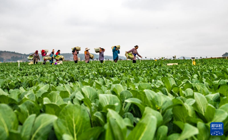 12月23日,在云南省文山壯族苗族自治州硯山縣,農(nóng)民在一家蔬菜基地收獲蔬菜。