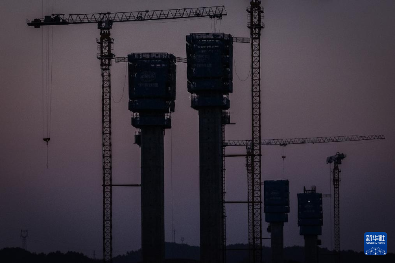當(dāng)日,由中鐵十一局承建的西(安)十(堰)高鐵漢江特大橋P4主塔順利封頂。漢江特大橋位于湖北省十堰市,是一座梁桁組合結(jié)構(gòu)斜拉橋,全長(zhǎng)917.45米,P3、P4兩座主塔高度均為186.5米,共設(shè)置80對(duì)斜拉索,主跨420米。