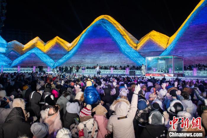 中新網(wǎng)哈爾濱12月24日電 (記者 王琳)“左腳,左腳,右腳,右腳……”24日晚,伴隨網(wǎng)紅主持人“左右哥”火遍大江南北的口號,第二十五屆哈爾濱冰雪大世界夢想大舞臺如約開啟“萬人羽絨服雪地派對”,大批中外游客在冰天雪地“蹦迪”,燃爆“冰城”的寒冷冬夜。