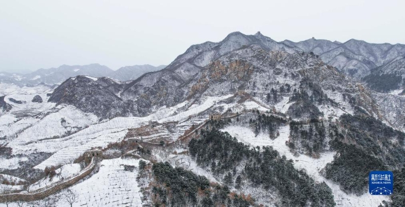 12月14日在河北省遷西縣拍攝的古長城雪景(無人機(jī)照片)。