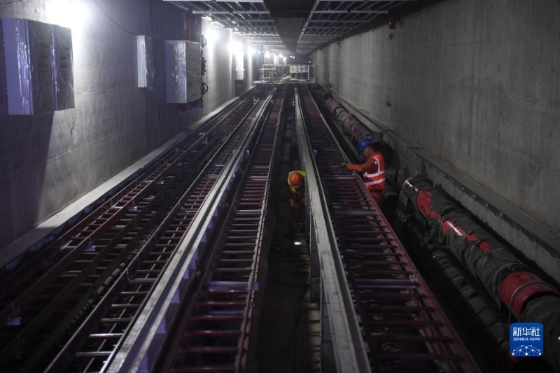 11月27日,工人在深中通道海底沉管隧道內(nèi)進(jìn)行安裝作業(yè)。
