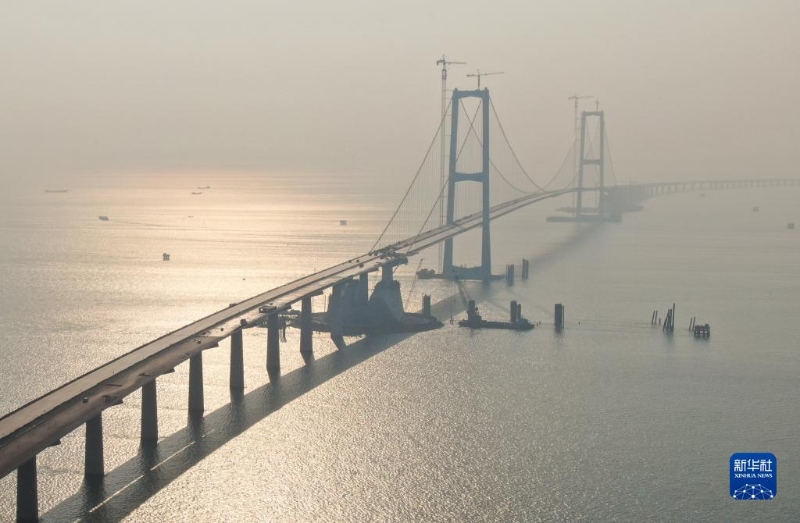 這是11月28日拍攝的深中通道伶仃洋大橋(無(wú)人機(jī)照片)。