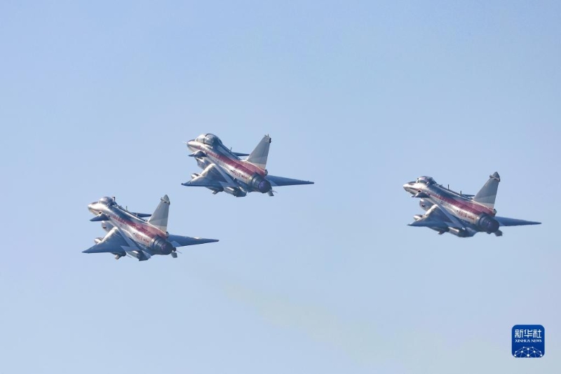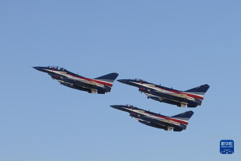 中國人民解放軍空軍八一飛行表演隊三機(jī)編隊從華北某機(jī)場啟程(11月7日攝)。新華社發(fā)(朱姜海 攝)