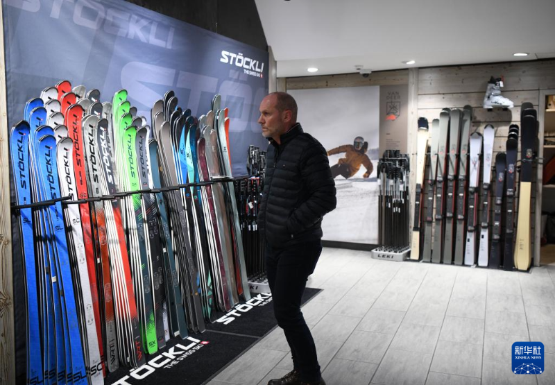 顧客在瑞士采爾馬特一家冬季運(yùn)動(dòng)用品商店選購(gòu)商品(12月10日攝)。