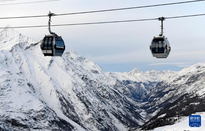 這是12月10日在瑞士采爾馬特拍攝的山間纜車。
