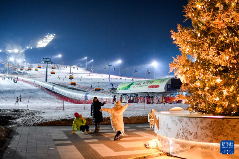 滑雪愛好者在吉林省吉林市萬科松花湖度假區(qū)體驗(yàn)“夜滑”(12月14日攝)。