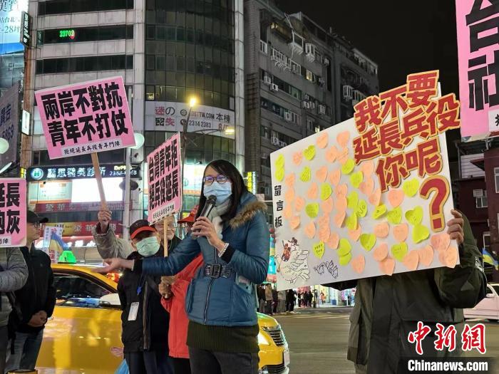 中新網北京12月25日電 臺灣青年24日晚走上臺北市街頭抗議兵役延長,表達反對“臺獨”引戰(zhàn)、臺海要和平等訴求。