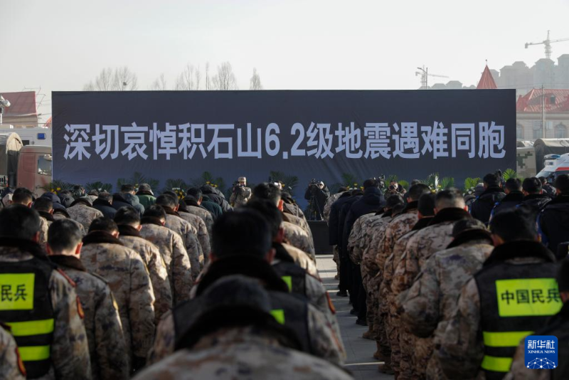 當(dāng)日,深切哀悼積石山6.2級(jí)地震遇難同胞默哀儀式在甘肅省臨夏州積石山縣大河家鎮(zhèn)大河文化廣場舉行。