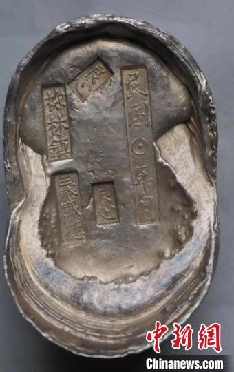 圖為山西柳林縣柳林鎮(zhèn)民國時期義盛德五十兩銀錠元寶。柳林縣宣傳事業(yè)發(fā)展中心供圖