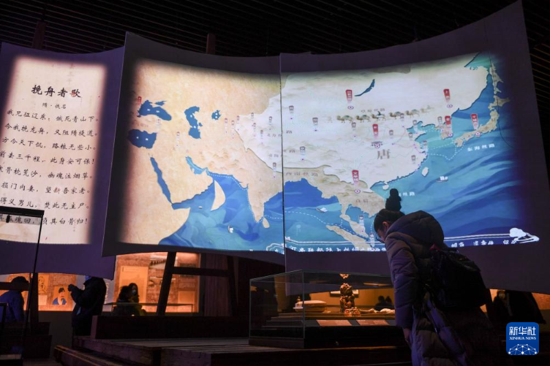 12月27日,觀眾在北京大運(yùn)河博物館參觀“不止運(yùn)河”沉浸式體驗(yàn)展。