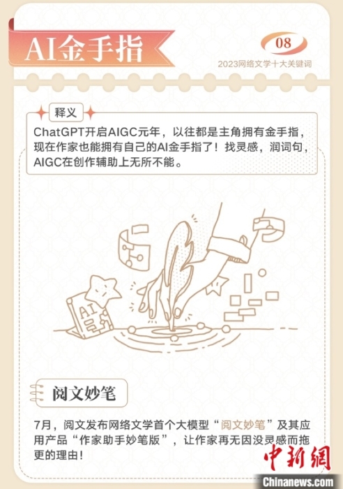 2023網(wǎng)絡(luò)文學(xué)十大關(guān)鍵詞——AI金手指。閱文集團(tuán) 供圖