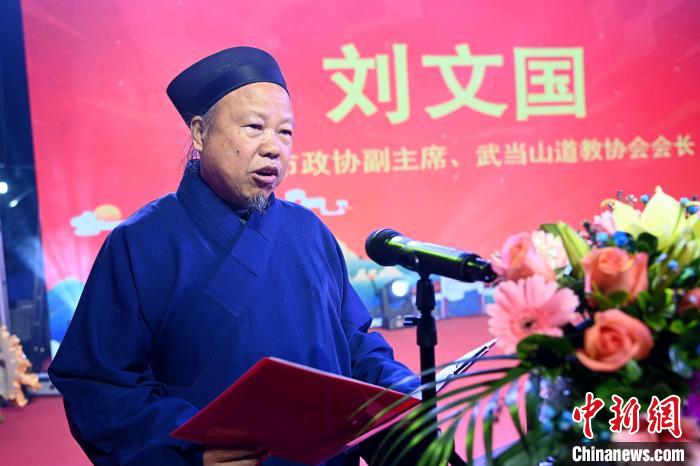 十堰市政協(xié)副主席、武當(dāng)山道教協(xié)會會長劉文國致辭。中新網(wǎng)記者張金川攝