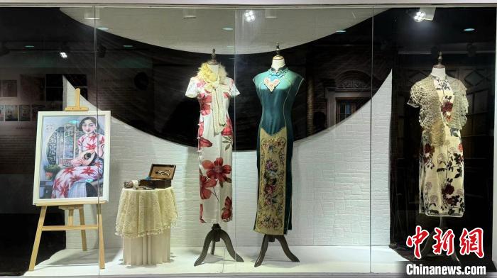 展覽呈現(xiàn)的旗袍、套裝、學生裝等各類近代時裝,引導觀眾追溯二十世紀20—30年代,上海毛紡織業(yè)的繁榮景象?!?華東師范大學供圖)