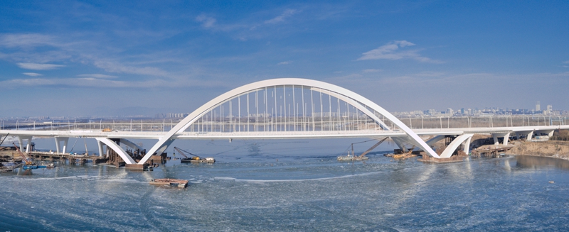 作為京雄高速全線控制性工程,京雄大橋已于2023年6月17日實(shí)現(xiàn)合龍,一舉刷新北京橋梁單跨跨度紀(jì)錄。橋梁采用飛燕式拱橋結(jié)構(gòu),拱頂以“中國結(jié)”造型的風(fēng)撐連接,寓意北京與雄安兩座城市緊密聯(lián)系、協(xié)同發(fā)展。