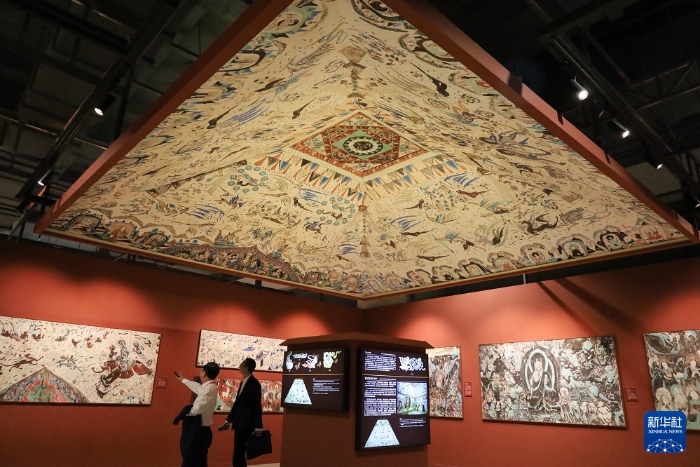9月6日,與會(huì)嘉賓在第六屆絲綢之路(敦煌)國(guó)際文化博覽會(huì)上參觀敦煌文化主題展。新華社記者 馬希平 攝(來(lái)源:新華網(wǎng))