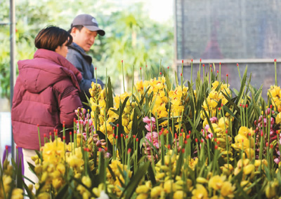 元旦臨近,貴州省都勻市花卉綠植批發(fā)市場迎來了銷售旺季。圖為市民在選購花卉。