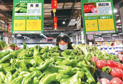 安徽省巢湖市啟動2024年元旦、春節(jié)期間“惠民菜籃子工程”。圖為市民在巢湖市一家超市選購“惠民菜”。