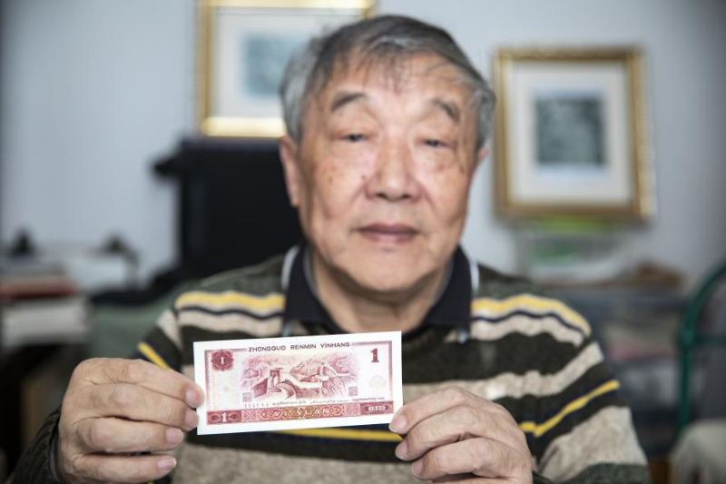 ↑花瑞松和第四套人民幣1元紙幣的合影。(吳建峰 攝)
