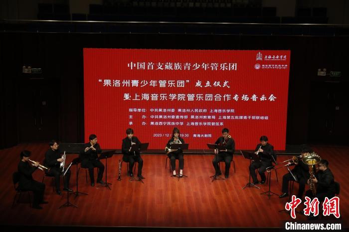 中新網(wǎng)西寧12月28日電 (記者 孫睿)中國(guó)首支藏族青少年管樂團(tuán)——果洛州青少年管樂團(tuán)成立儀式暨上海音樂學(xué)院管樂團(tuán)合作專場(chǎng)音樂會(huì)27日晚在青海大劇院舉行。