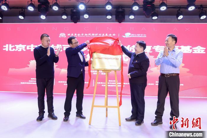 北京中軸線可移動文物修復(fù)專項基金28日在北京成立,圖為嘉賓為項目揭牌。主辦方供圖