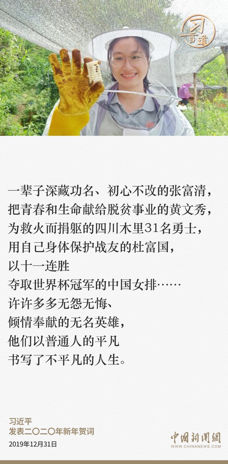 平凡鑄就偉大,英雄來(lái)自人民。自2013年歲末起,國(guó)家主席習(xí)近平連續(xù)10年發(fā)表新年賀詞。在新年賀詞中,習(xí)近平總會(huì)為奮斗的中國(guó)人點(diǎn)贊、加油鼓勁,勉勵(lì)大家“征途漫漫,惟有奮斗”。