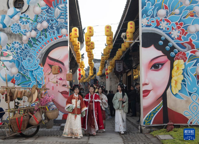 ??12月30日,在浙江省金華市金東區(qū)嶺下鎮(zhèn)坡陽古街,人們身著傳統(tǒng)服飾參加巡游。