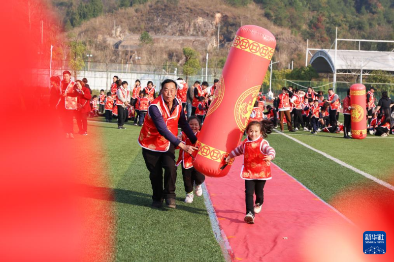 ??12月30日,家長和小朋友在貴州省黔東南苗族侗族自治州岑鞏縣一所幼兒園參加迎新年趣味活動。