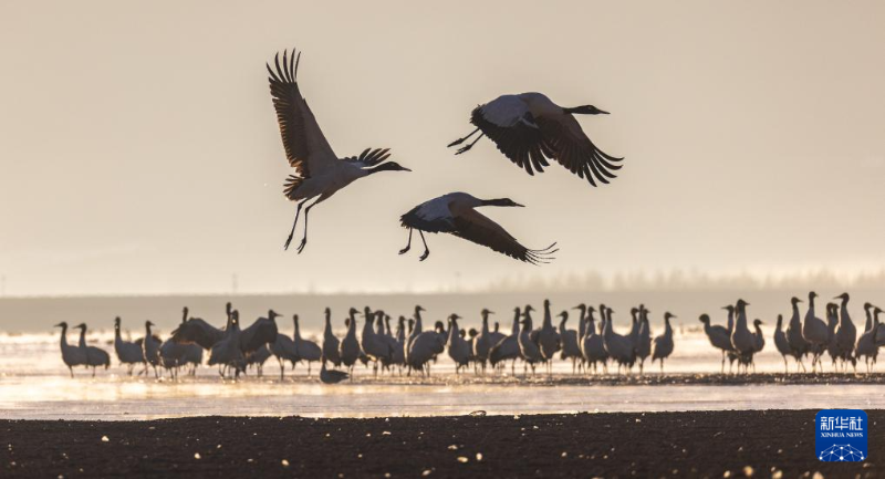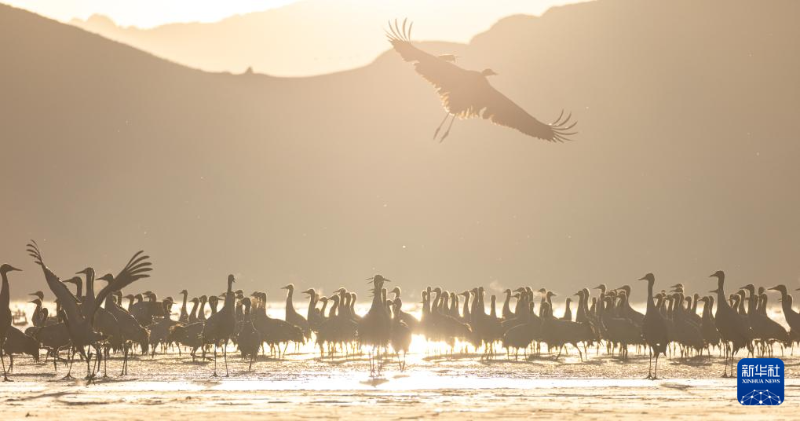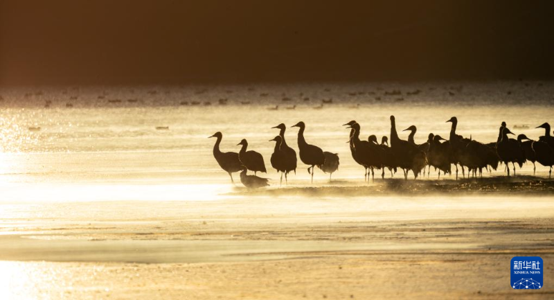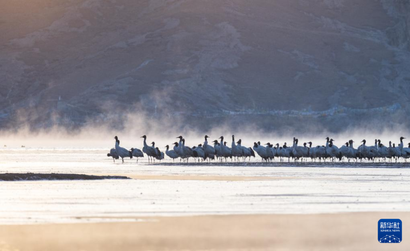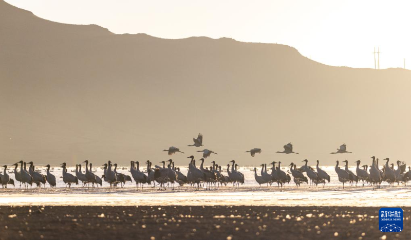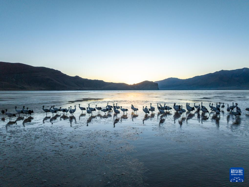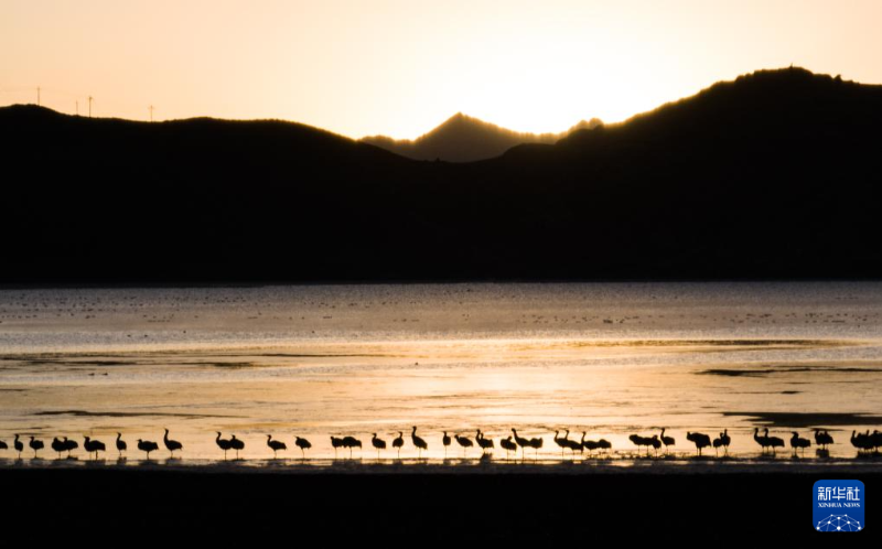 ??拉薩北部的林周縣平均海拔約4200米,是黑頸鶴的主要越冬地之一。清晨的陽(yáng)光灑在林周縣虎頭山水庫(kù),水面波光粼粼,鶴影婀娜多姿。