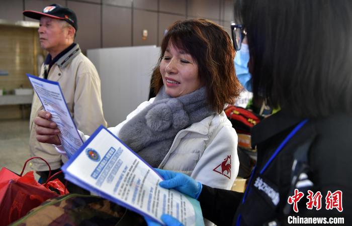 1月1日,連江黃岐客運(yùn)碼頭,臺(tái)胞正在了解中華人民共和國出入境管理局支持福建建設(shè)兩岸融合發(fā)展示范區(qū)十項(xiàng)出入境政策措施。中新社記者 張斌 攝