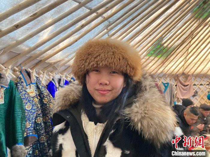圖為臺灣交換生李育寧體驗(yàn)蒙古族服飾。(受訪者供圖)