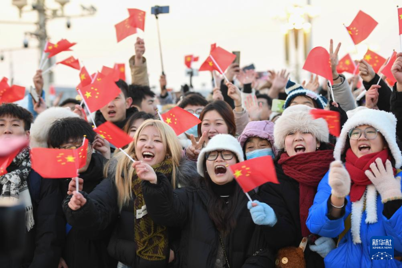 1月1日晨,北京天安門廣場舉行隆重的升國旗儀式。這是觀眾在升旗儀式結(jié)束后歡呼。