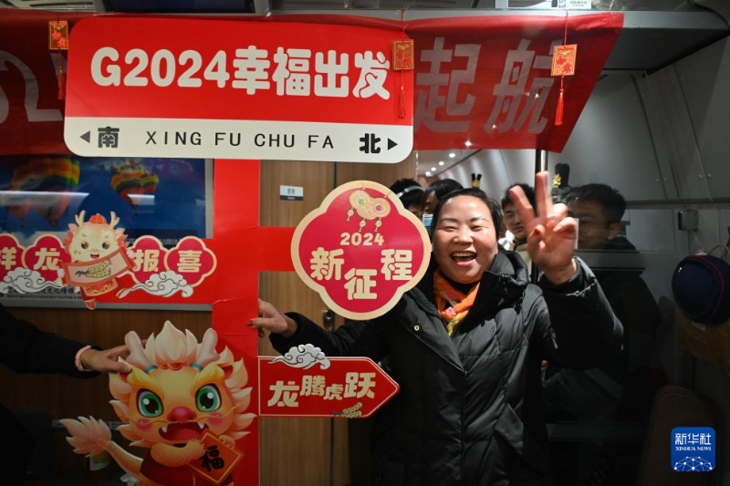 1月1日,在從蘭州開往鄭州的G2024次列車上,乘客在慶祝新年。