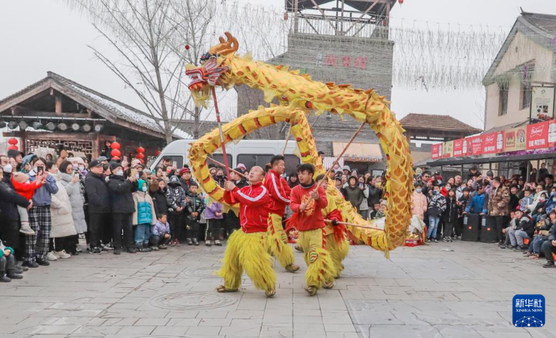 1月1日,游客在河北省遵化市興旺寨鎮(zhèn)一景區(qū)觀看舞龍表演。