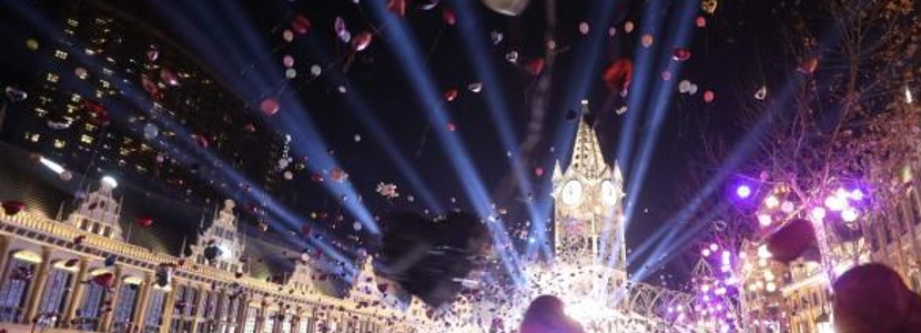山東青島萬人“跨年夜”音樂狂歡派對(duì)上,上萬人共同迎接新年。金正輝 攝