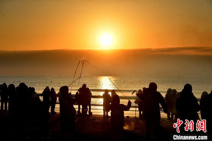 青島石老人浴場迎來眾多游客市民“打卡”新年日出?!⊥鹾I 攝